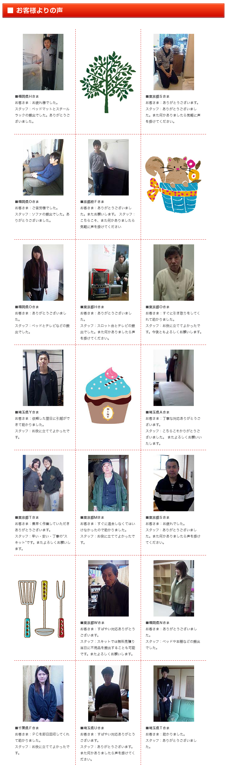 - A. 不用品回収/粗大ごみ回収のお手伝いや引越、その他サービスの受付時間は午前9時〜午後8時です。